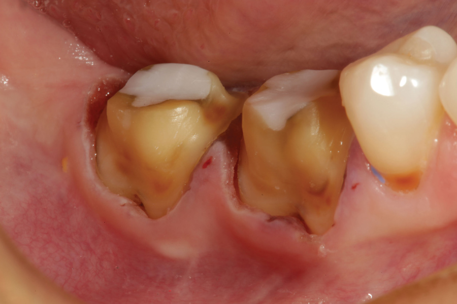 Αποκατάσταση μύλης οπισθίων δοντιών της κάτω γνάθου με μεταλλοκεραμικές στεφάνες